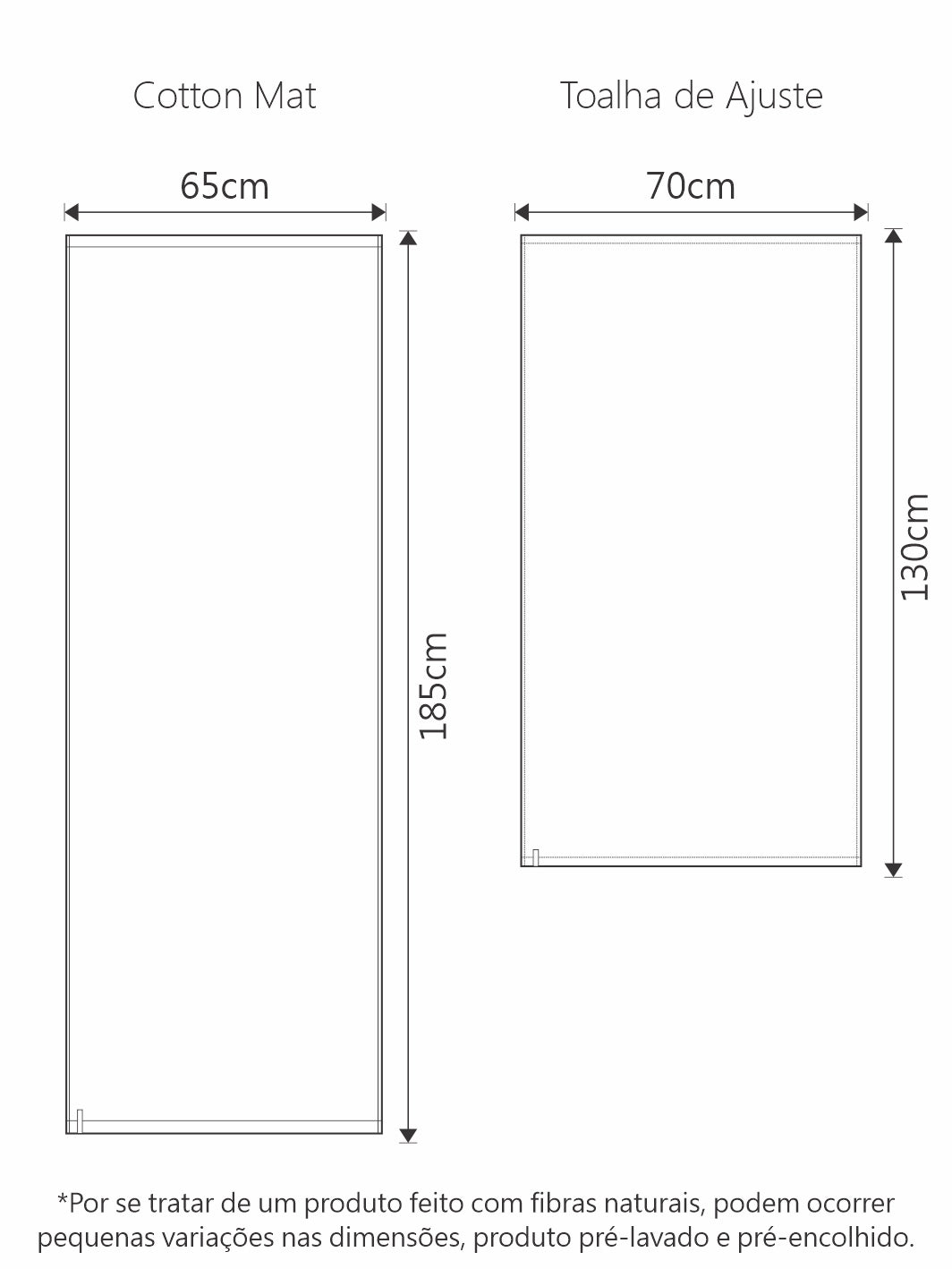 O Kit Yoga é composto pela Toalha de Ajuste e pelo Cotton Mat, dois itens confeccionados em 100% fibra natural de algodão, pensados para oferecer mais conforto, funcionalidade e absorção durante a prática de Yoga.