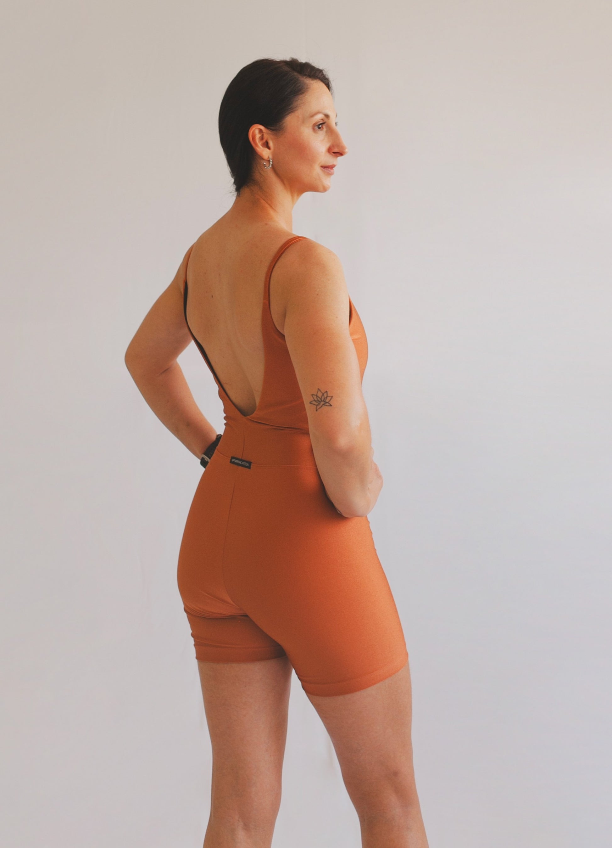 Macaquinho Alcinha Costas em V Spirit, design autoral e produzido no Brasil.