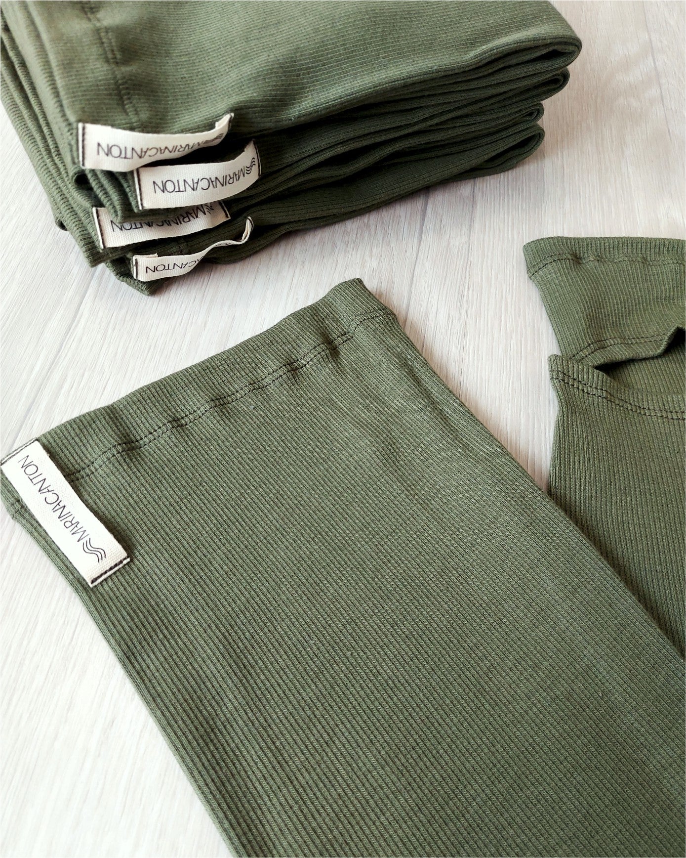 Polaina Longa com Pézinho em Algodão Canelado Oliva