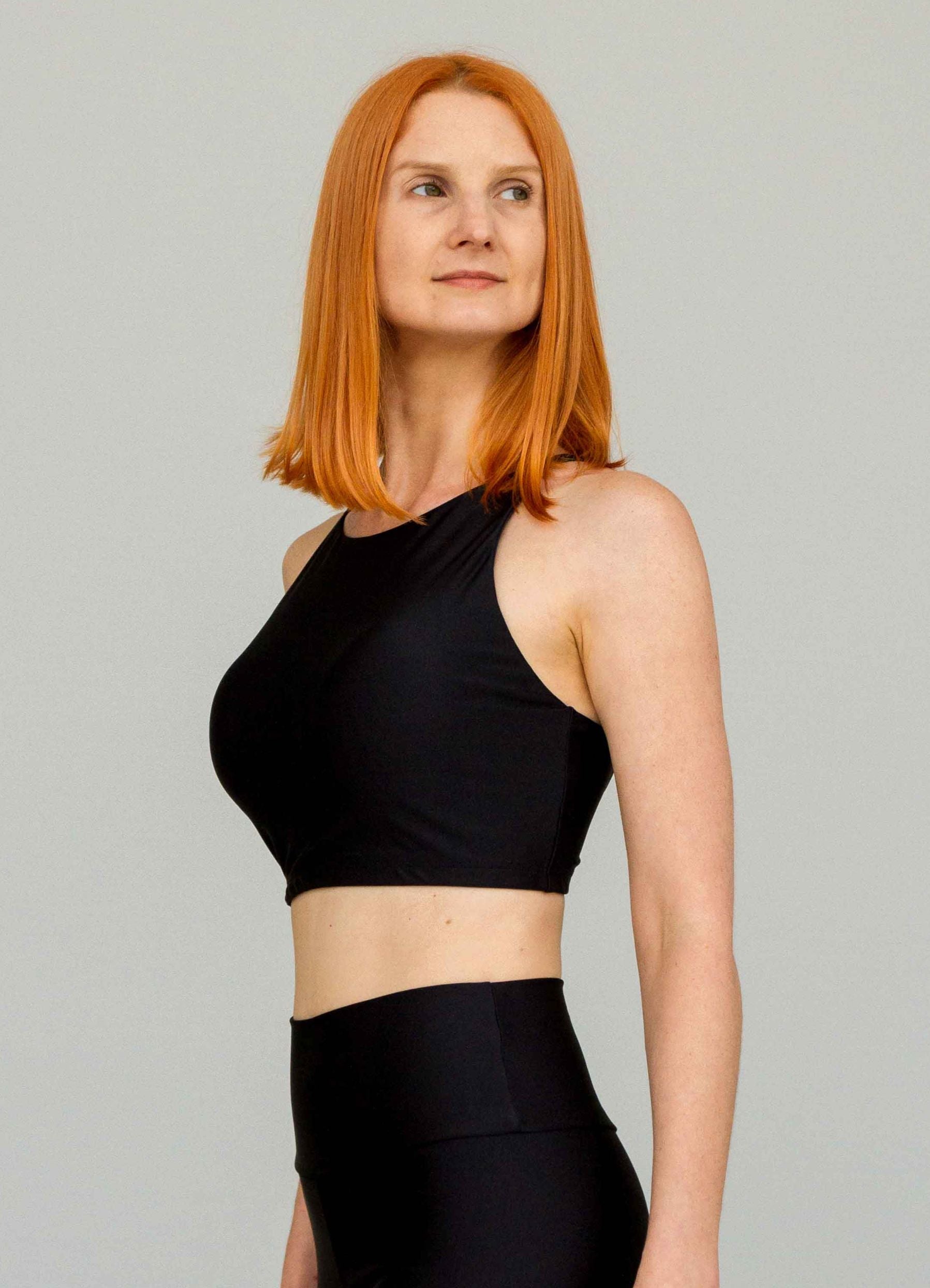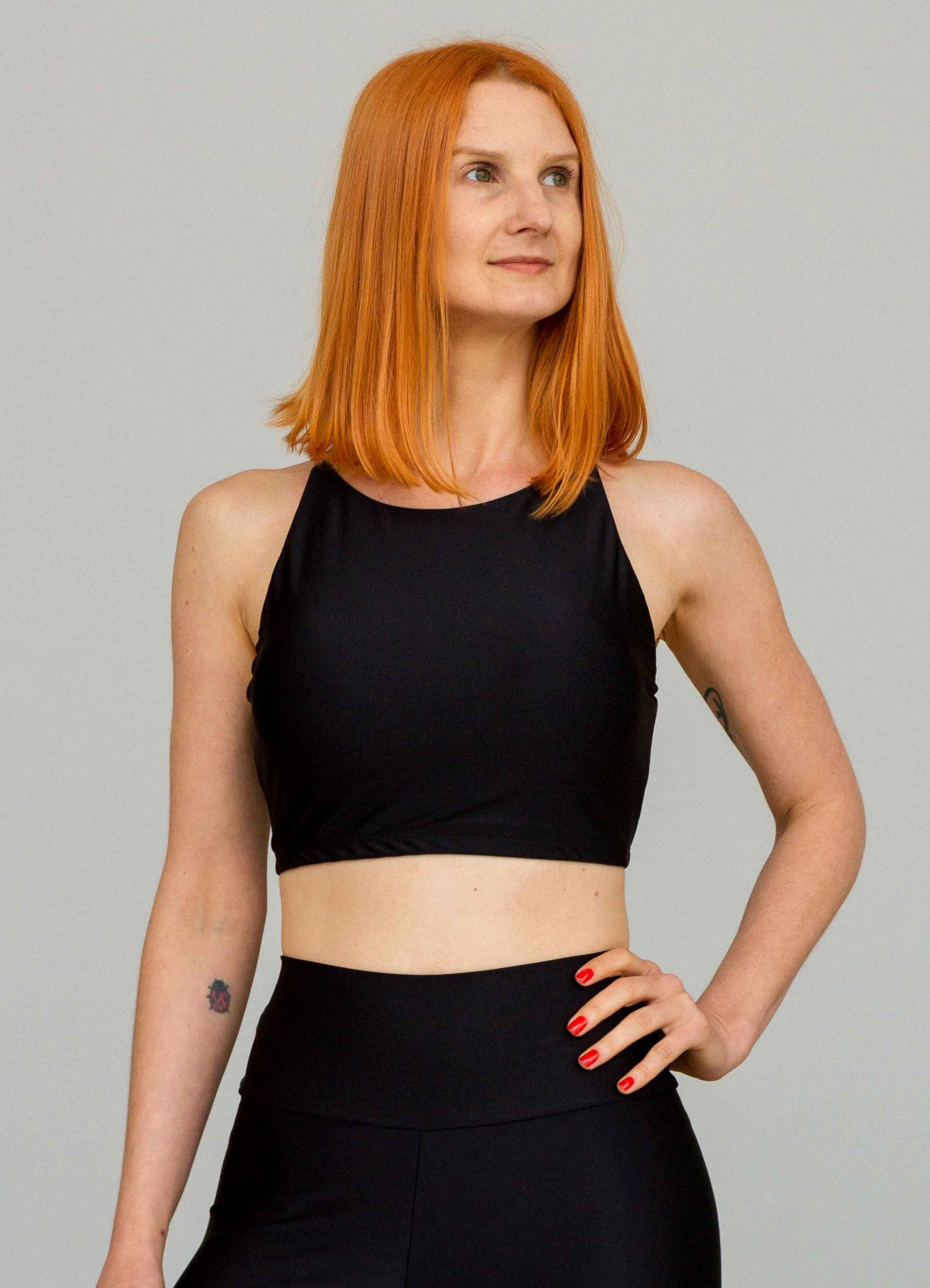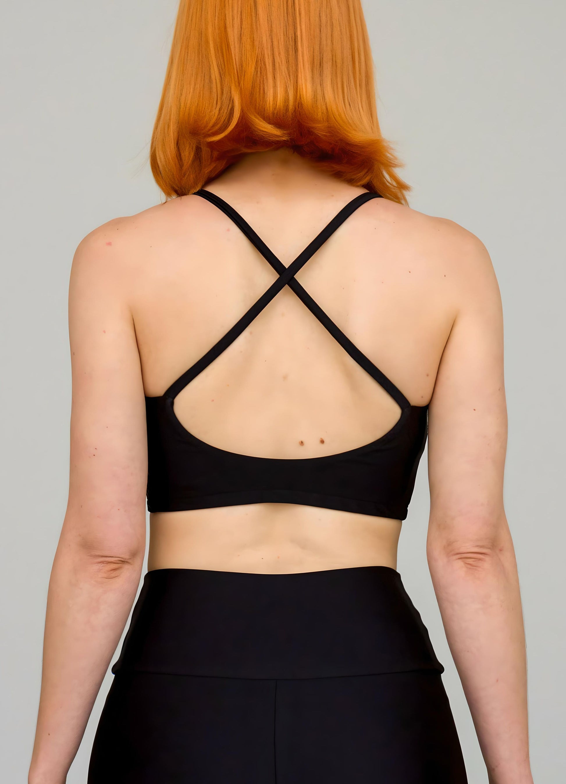 Top Spirit com alças cruzadas nas costas reforçada com elástico interno, tem decote frontal arredondado e fechado próximo ao pescoço, decote profundo nas costas. Top todo forrado com elástico embutido, e na cintura elástico de 1,5cm de largura. Sem Bojo, com abertura para bojo removível. Esta peça única une estilo, conforto e funcionalidade.